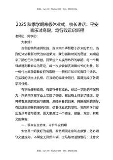 2025秋季学期寒假休业式,校长讲话:平安喜乐过寒假,笃行致远启新程.doc