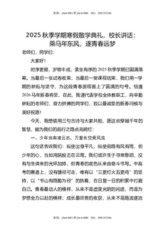 2025秋季学期寒假散学典礼,校长讲话:乘马年东风,逐青春远梦.doc