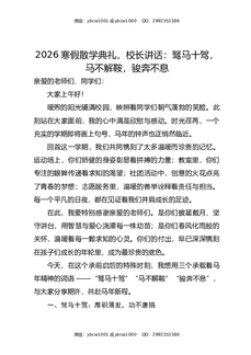 2026寒假散学典礼,校长讲话:驽马十驾,马不解鞍,骏奔不息.docx