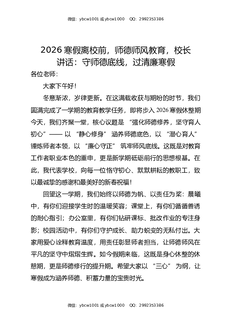 2026寒假离校前,师德师风教育,校长讲话:守师德底线,过清廉寒假.docx