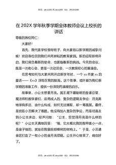 在202X学年秋季学期全体教师会议上校长的讲话.docx