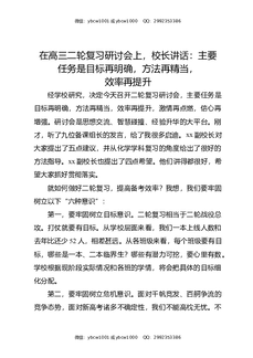 在高三二轮复习研讨会上,校长讲话:主要任务是目标再明确,方法再精当,效率再提升.docx