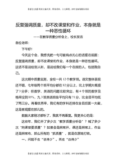 在教学质量分析会上,校长发言:反复强调质量,却不改课堂和作业,本身就是一种恶性循环.doc