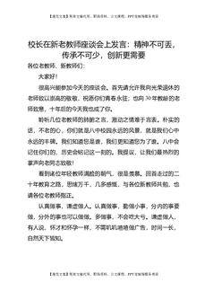 校长在新老教师座谈会上发言:精神不可丢,传承不可少,创新更需要.doc