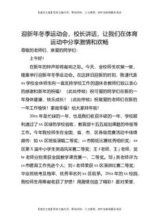 迎新年冬季运动会,校长讲话,让我们在体育运动中分享激情和欢畅.doc