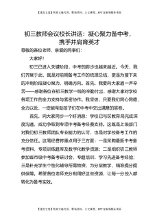 初三教师会议校长讲话:凝心聚力备中考,携手并肩育英才.doc
