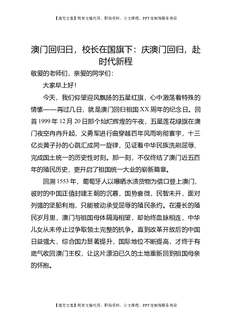澳门回归日,校长在国旗下:庆澳门回归,赴时代新程.doc