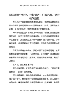 期末质量分析会,校长讲话:打破沉默,提升教学质量.docx