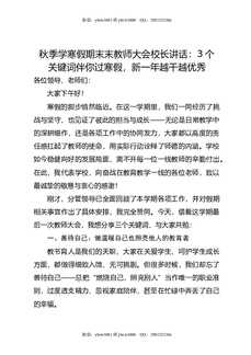 秋季学寒假期末末教师大会校长讲话:3个关键词伴你过寒假,新一年越干越优秀.doc