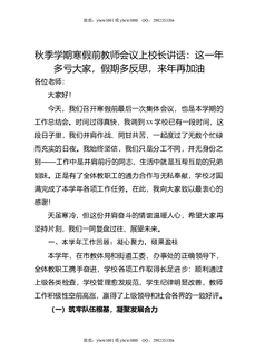 秋季学期寒假前教师会议上校长讲话:这一年多亏大家,假期多反思,来年再加油.doc