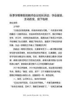 秋季学期寒假前教师会议校长讲话:学会接受,主动改变,放下包袱.doc
