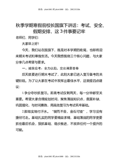 秋季学期寒假前校长国旗下讲话:考试,安全,假期安排,这3件事要记牢.doc