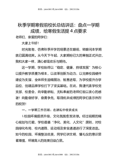 秋季学期寒假前校长总结讲话:盘点一学期成绩,给寒假生活提4点要求.doc