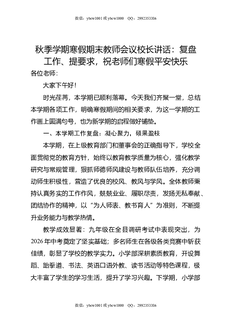 秋季学期寒假期末教师会议校长讲话:复盘工作,提要求,祝老师们寒假平安快乐.doc
