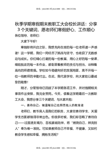 秋季学期寒假期末教职工大会校长讲话:分享3个关键词,愿老师们寒假舒心,工作顺心.doc