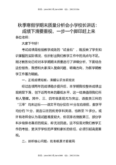 秋季寒假学期末质量分析会小学校长讲话:成绩下滑要重视,一步一个脚印赶上来.doc