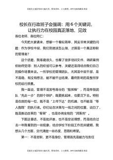 校长在行政班子会强调:用6个关键词,让执行力在校园真正落地、见效.doc
