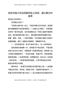 校长在高三毕业班教师会上讲话:凝心聚力冲高考.doc