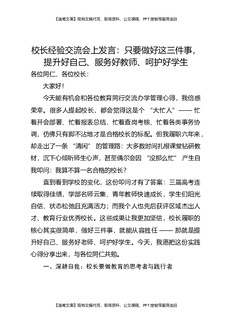 校长经验交流会上发言:只要做好这三件事,提升好自己、服务好教师、呵护好学生.docx