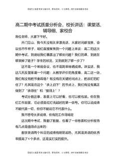 高二期中考试质量分析会,校长讲话:课堂活、辅导细、家校合.doc