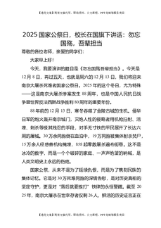 2025国家公祭日,校长在国旗下讲话:勿忘国殇,吾辈担当.doc