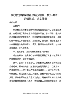 学校教学常规检查总结反馈会,校长讲话:抓细常规,抓实质量.doc