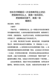 校长在学期最后一次全体教师会上讲话:把困难举在头上,就是一块压顶石,把困难踩在脚下,就是一块铺路石.doc