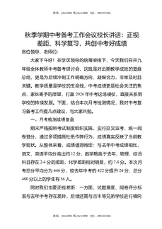 秋季学期中考备考工作会议校长讲话:正视差距,科学复习,共创中考好成绩.doc