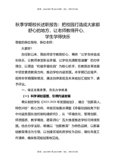 秋季学期校长述职报告:把校园打造成大家都舒心的地方,让老师教得开心,学生学得快乐.doc