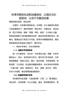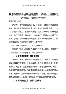 秋季学期校长述职述廉报告:做人讲品德,做事靠能力,干活够勤快,交出满意答卷.doc