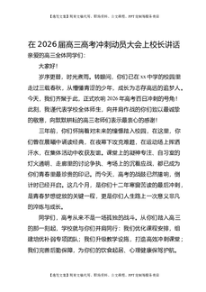 在2026届高三高考冲刺动员大会上校长讲话.doc