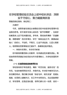在学校管理经验交流会上初中校长讲话:深耕实干守初心,聚力赋能育新苗.doc