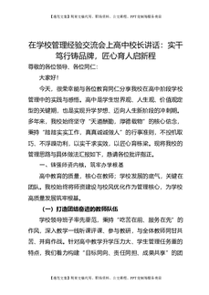 在学校管理经验交流会上高中校长讲话:实干笃行铸品牌,匠心育人启新程.doc