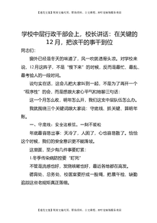 学校中层行政干部会上,校长讲话:在关键的12月,把该干的事干到位.doc
