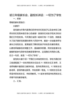 初三年级家长会,副校长讲话:一切为了学生.doc