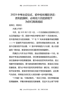 202X中考出征仪式,初中校长精彩讲话:胜利的旗帜,必将在六月的骄阳下为你们高高扬起.docx