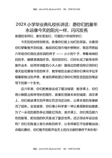 202X小学毕业典礼校长讲话:愿你们的童年永远像今天的阳光一样,闪闪发亮.docx