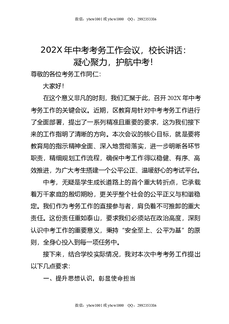 202X年中考考务工作会议,校长讲话:凝心聚力,护航中考!.docx