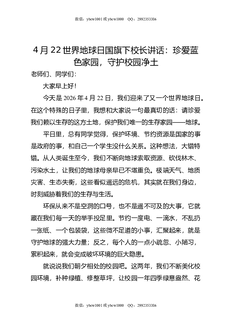 4月22世界地球日国旗下校长讲话:珍爱蓝色家园,守护校园净土.docx