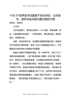 4月23世界读书日国旗下校长讲话:让好读书,读好书成为我们最珍贵的习惯.docx