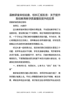 县教研室来校巡查,校长汇报发言:关于提升我校教育教学质量整改提升的反思.doc