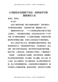 小学副校长在国旗下讲话:培养良好习惯,奠基美好人生.doc