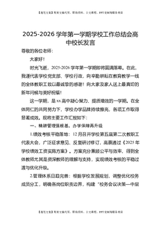 2025-2026学年第一学期学校工作总结会高中校长发言.doc