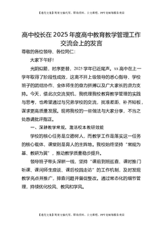 高中校长在2025年度高中教育教学管理工作交流会上的发言.doc