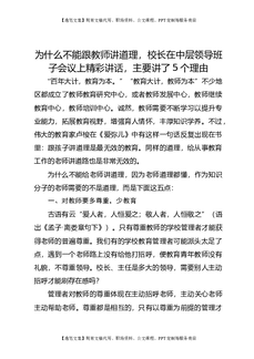 为什么不能跟教师讲道理校长在中层领导班子会议上精彩讲话,主要讲了5个理由.doc
