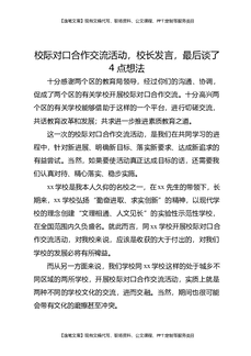 校际对口合作交流活动,校长发言,最后谈了4点想法.docx