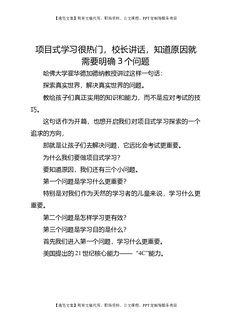 项目式学习很热门,校长讲话,知道原因就需要明确3个问题.doc