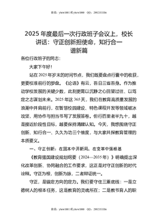 2025年度最后一次行政班子会议上,校长讲话:守正创新担使命,知行合一谱新篇.doc