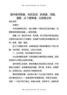 提升教学质量,校长发言:抓高度,深度,温度,以3度铸魂,以质量立校.doc