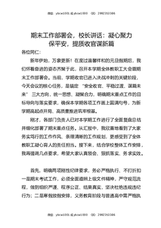 期末工作部署会,校长讲话:凝心聚力保平安,提质收官谋新篇.docx